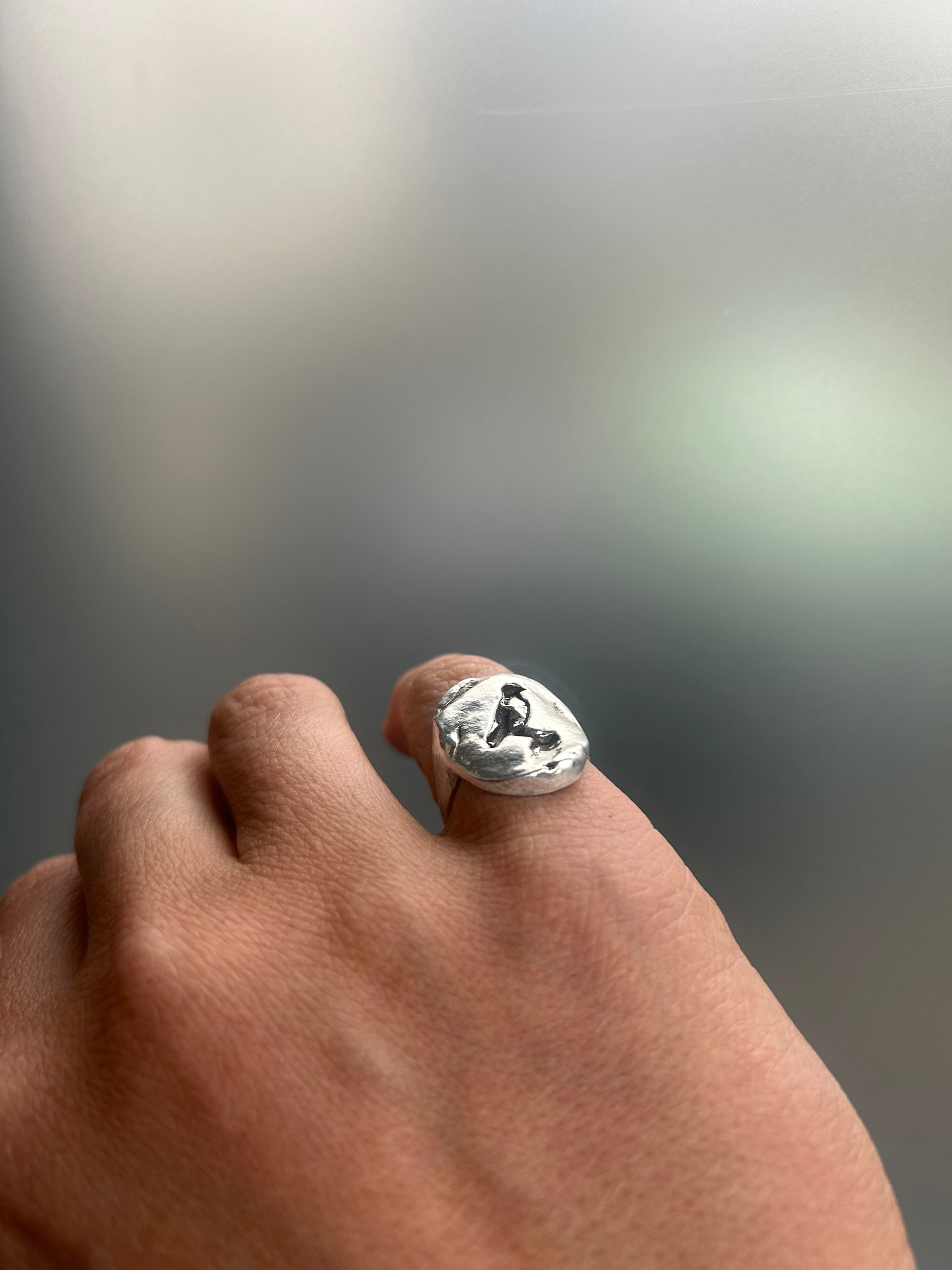 A generous but comfortable ring approximately 9-12mm across on the front. With two bobbles on the side and one on the back.